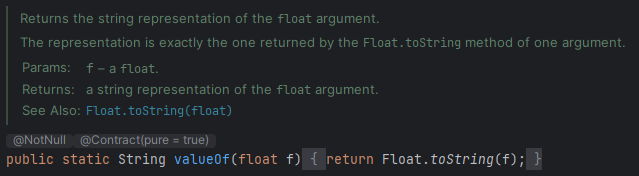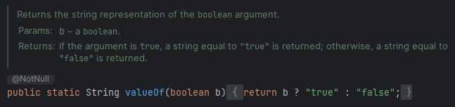 String 클래스에서 제공하는 함수로 valueOf( ) 함수는 아래와 같은 타입 등을 파라미터로 받아서 문자열 표현으로 반환하는 정적 메서드이다.