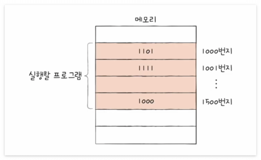 1. 예시로, CPU로 실행할 프로그램이 1000번지부터 1500번지까지 저장되어 있다고 가정하자. 그리고 1000번지에는 1101(2)이 저장되어 있다고 하자.