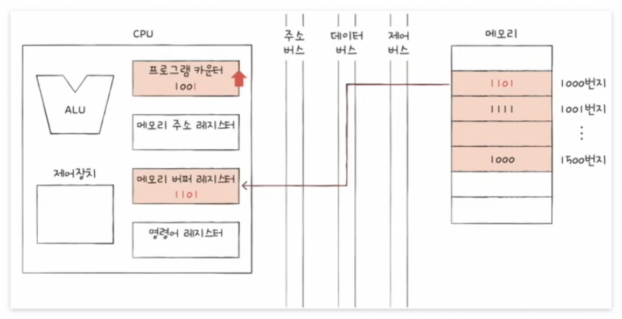 * 프로그램 카운터는 지속적으로 증가하며 계속해서 다음 명령어를 읽어 들일 준비를 한다.