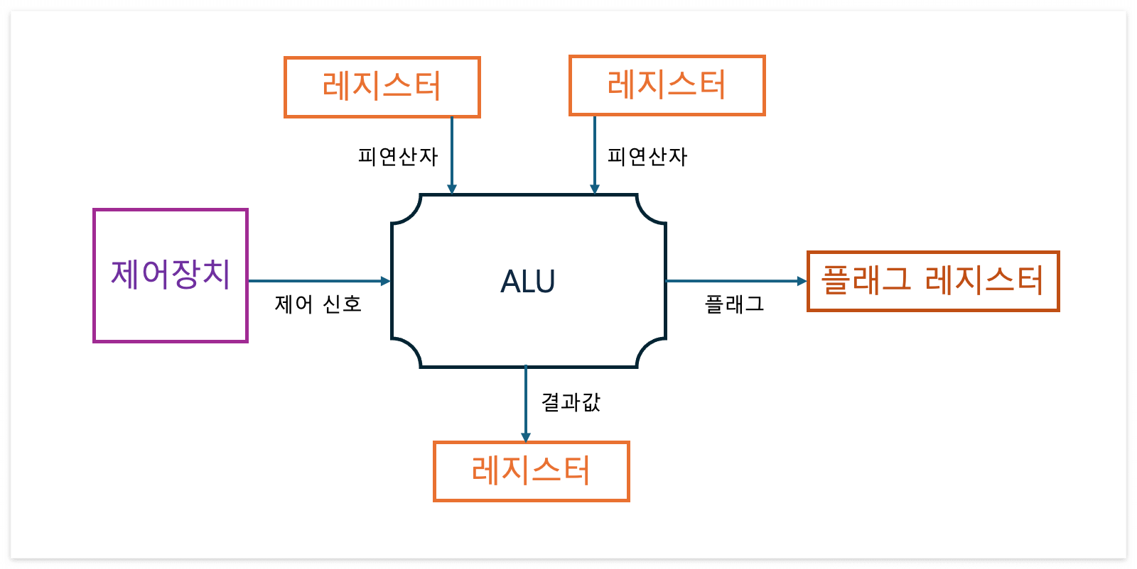 --> ALU는 레지스터로부터 피연산자를, 제어장치로부터 제어 신호를 받아들인다.