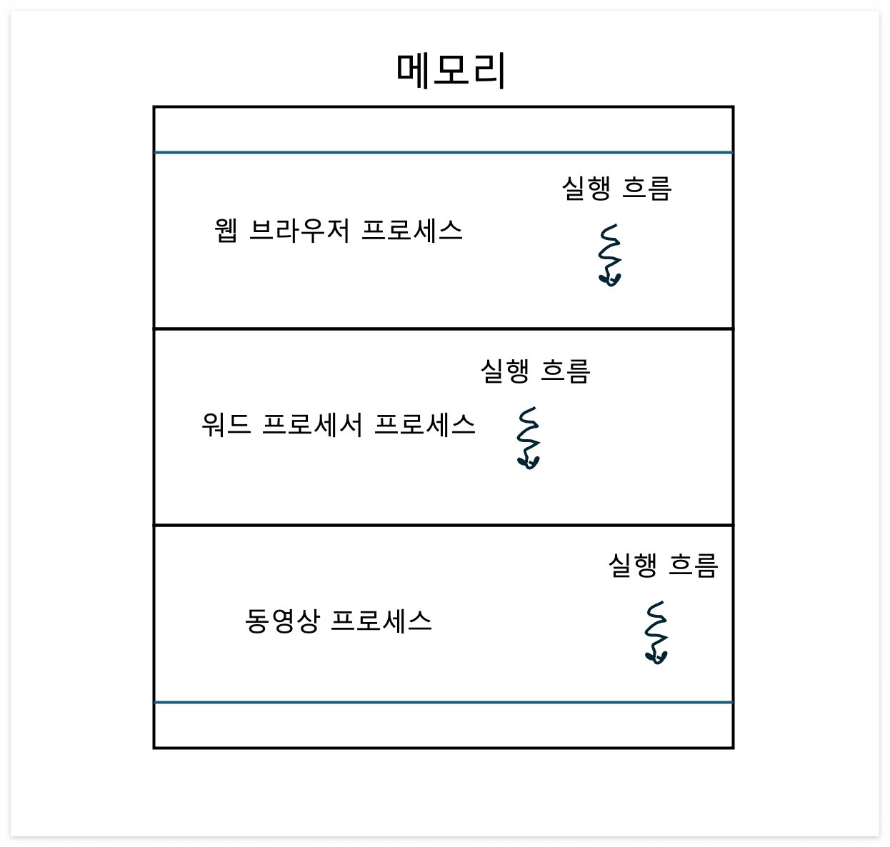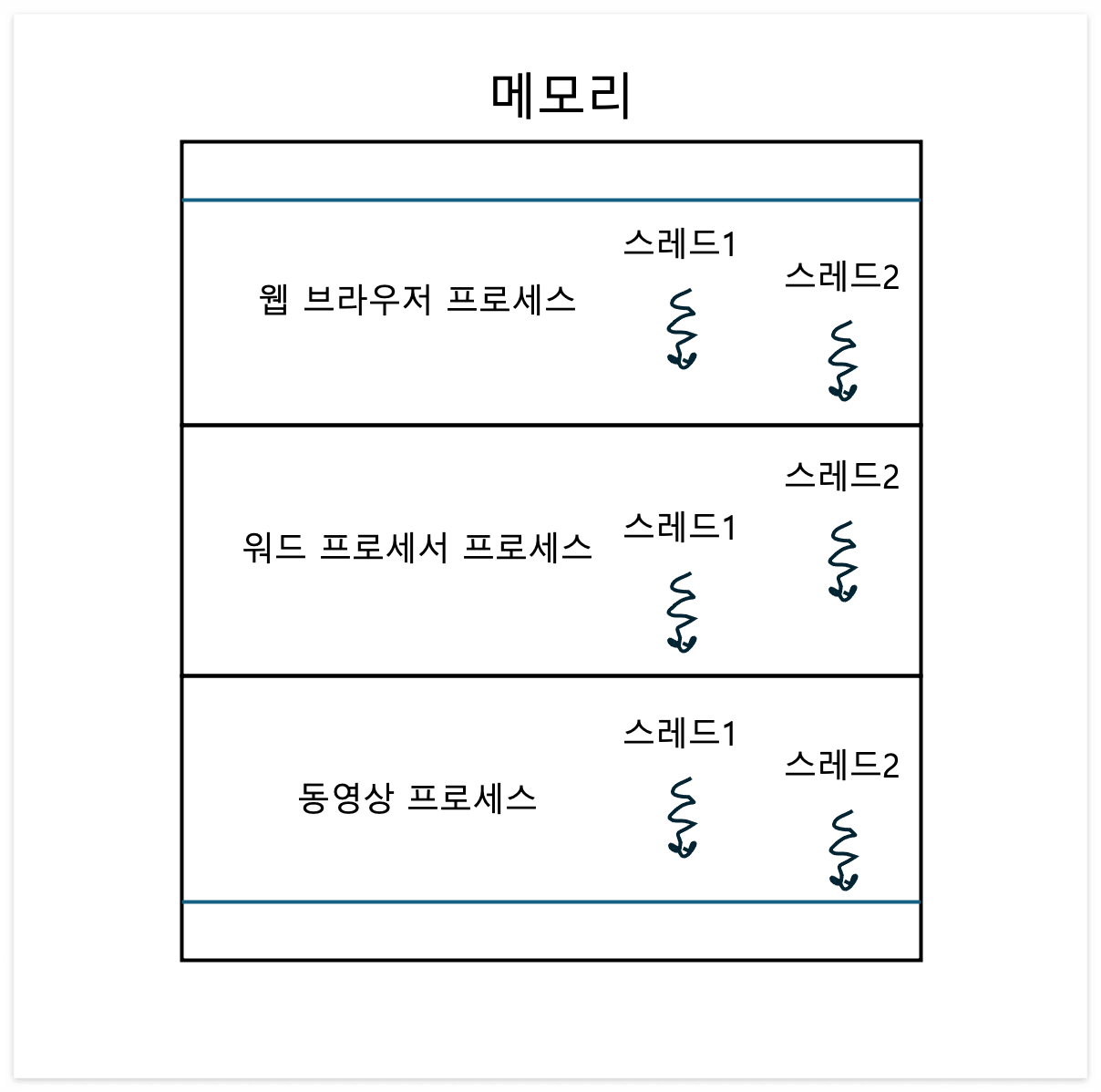 단일 스레드 프로세스를 여러 개 실행할 때는 프로세스끼리는 기본적으로 자원을 공유하지 않는다.